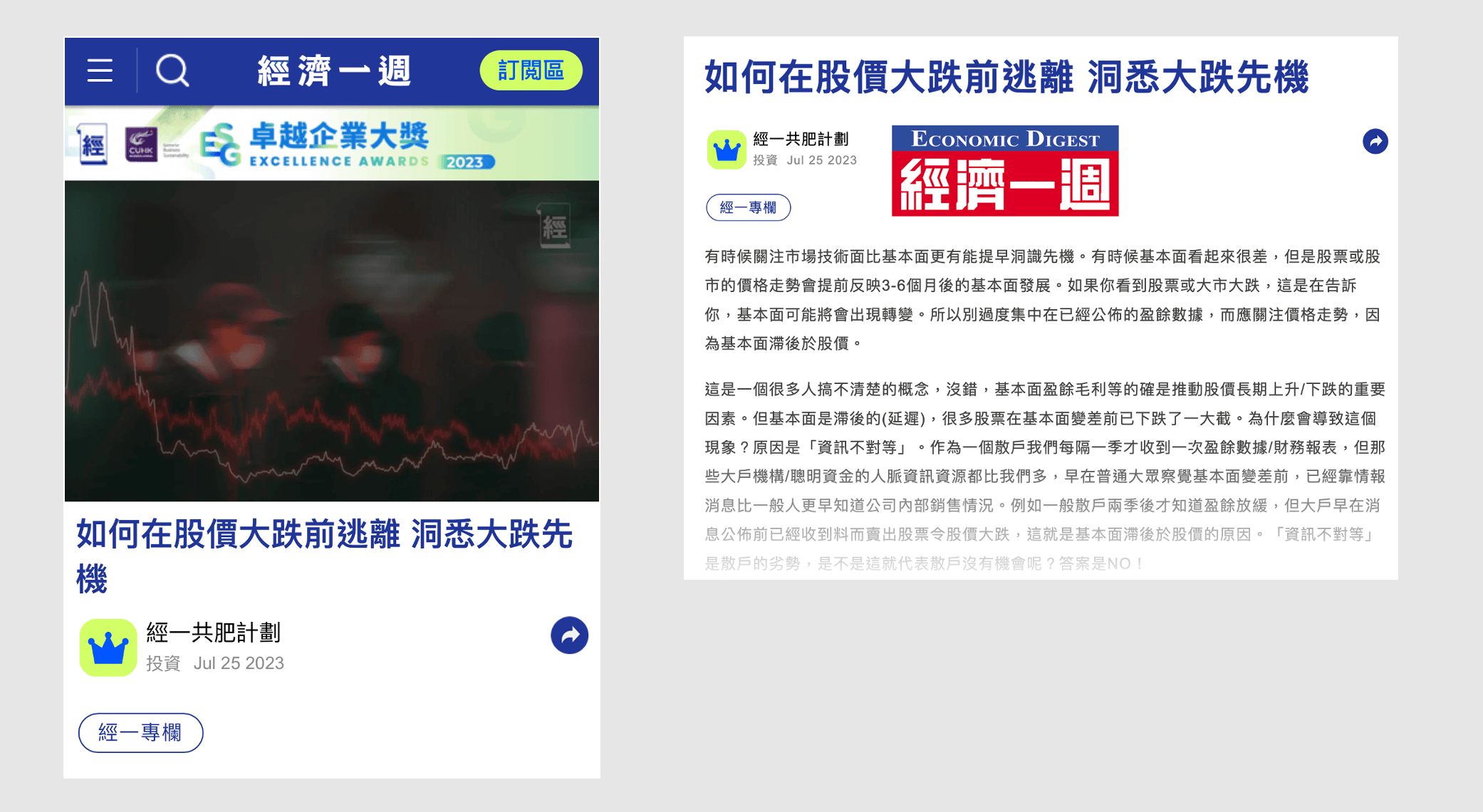 著名財經報章《經濟一週》前專欄作家